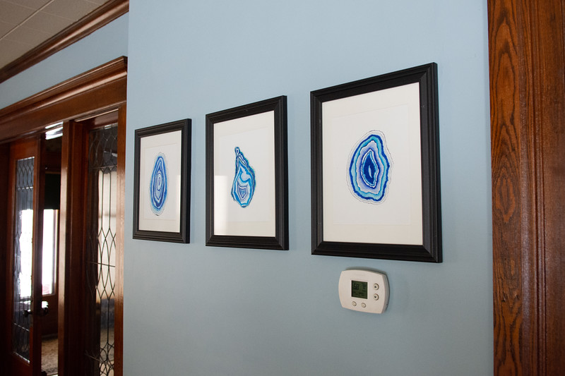 Connie’s studio is on George Street behind Monnat’s IGA. It is housed in a gorgeous Victorian Bed and Breakfast. The place lives up to its name: All Things Beautiful. Connie and her husband, Randy, have meticulously cared for it for the last 15 years. The restoration work is obvious, from gleaming hardwood floors, doors, and cabinets to a chef’s kitchen. Connie designed the kitchen and had it made by a local craftsman. Her attention to detail is clear.